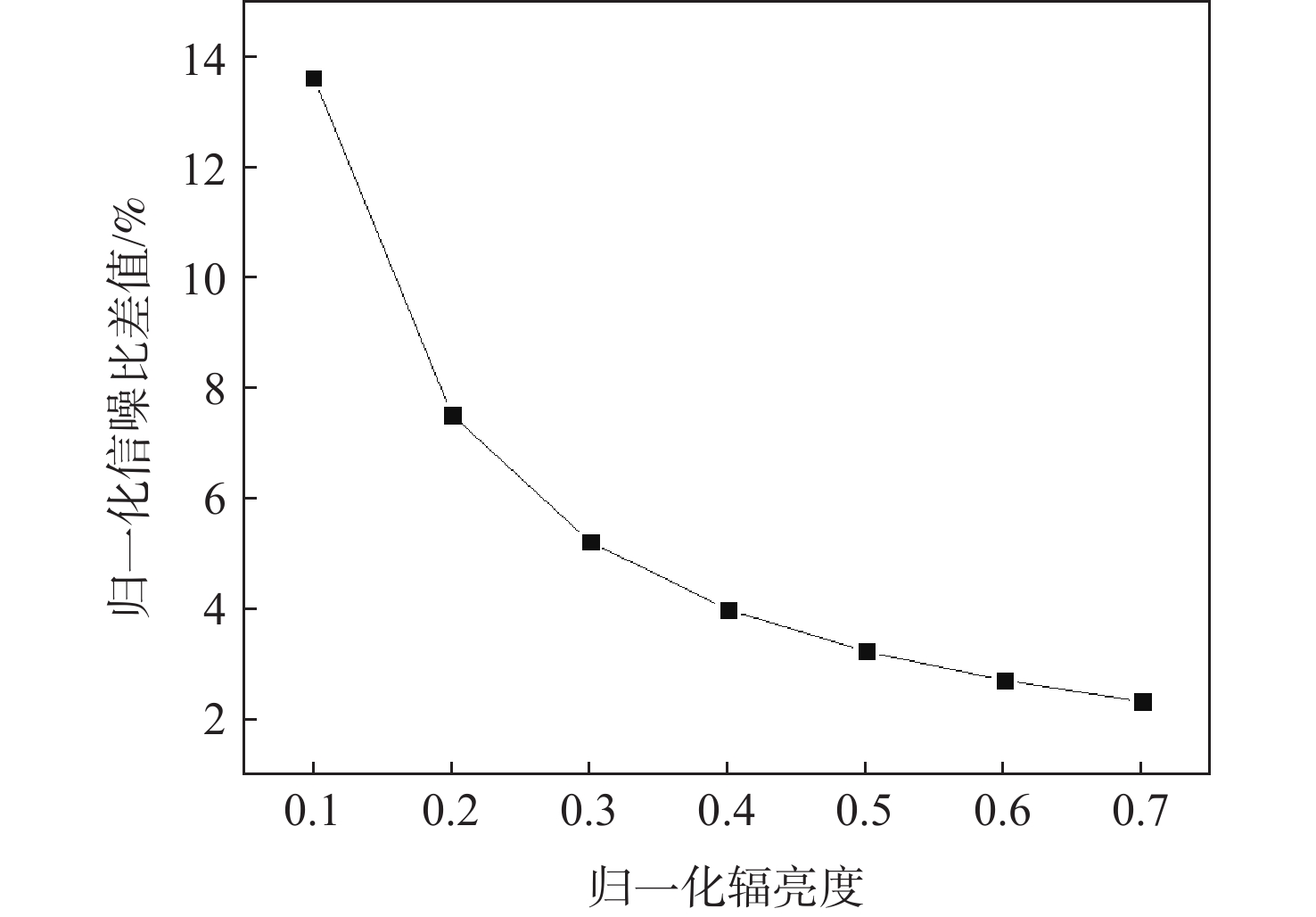 信噪比噪声等效电子数 信噪比 暗行法 列总量比例法 暗行法 列总量比例法 0.1 14651 20033 121.0 140.2 104.5 121.0 121.0 0.2 29358 20033 171.3 185.4 158.4 171.3 171.3 0.3 44064 20033 209.9 221.5 198.9 209.9 209.9 0.4 58605 20033 242.1 252.2 232.4 242.1 242.1 0.5 73395 20033 270.9 280.0 262.1 270.9 270.9 0.6 88128 20033 296.9 305.2 288.8 296.9 296.9 0.7 102560 20033 320.2 328.0 312.7 320.2 320.2 表 4 卫星数据计算结果