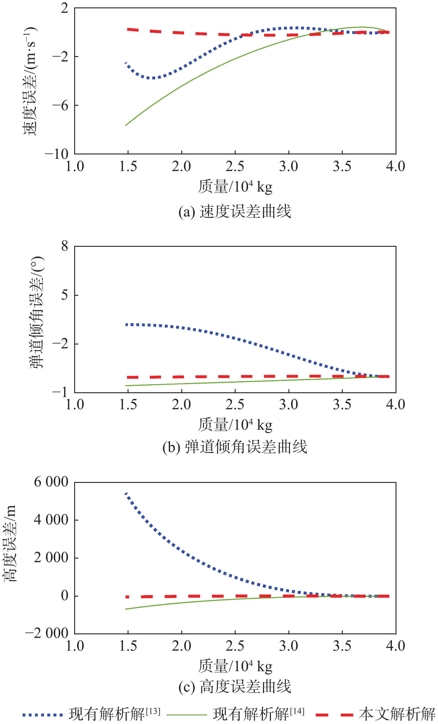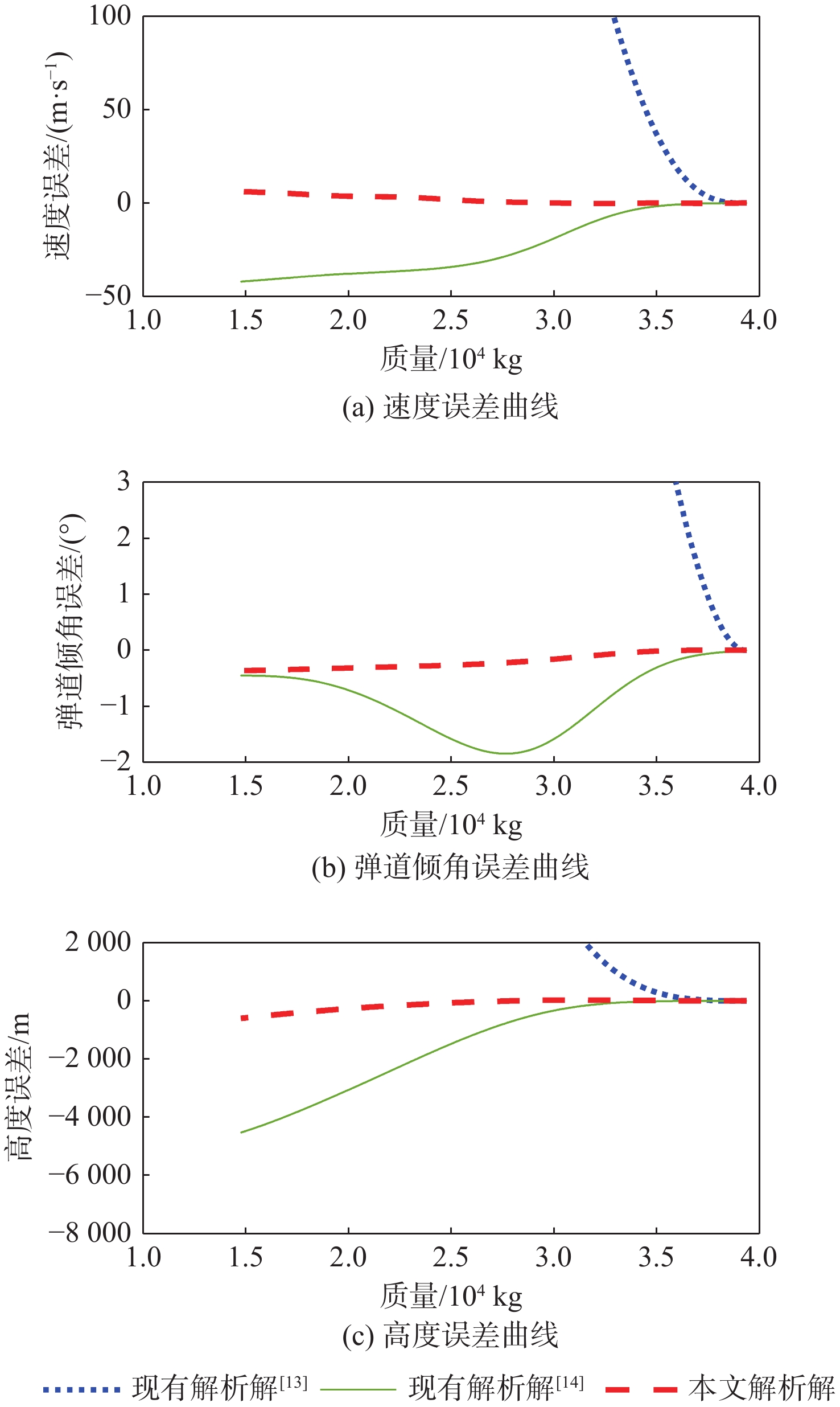 速度/(m·s−1) 速度相对误差1/% 速度相对误差2/% 弹道倾角/(°) 弹道倾角