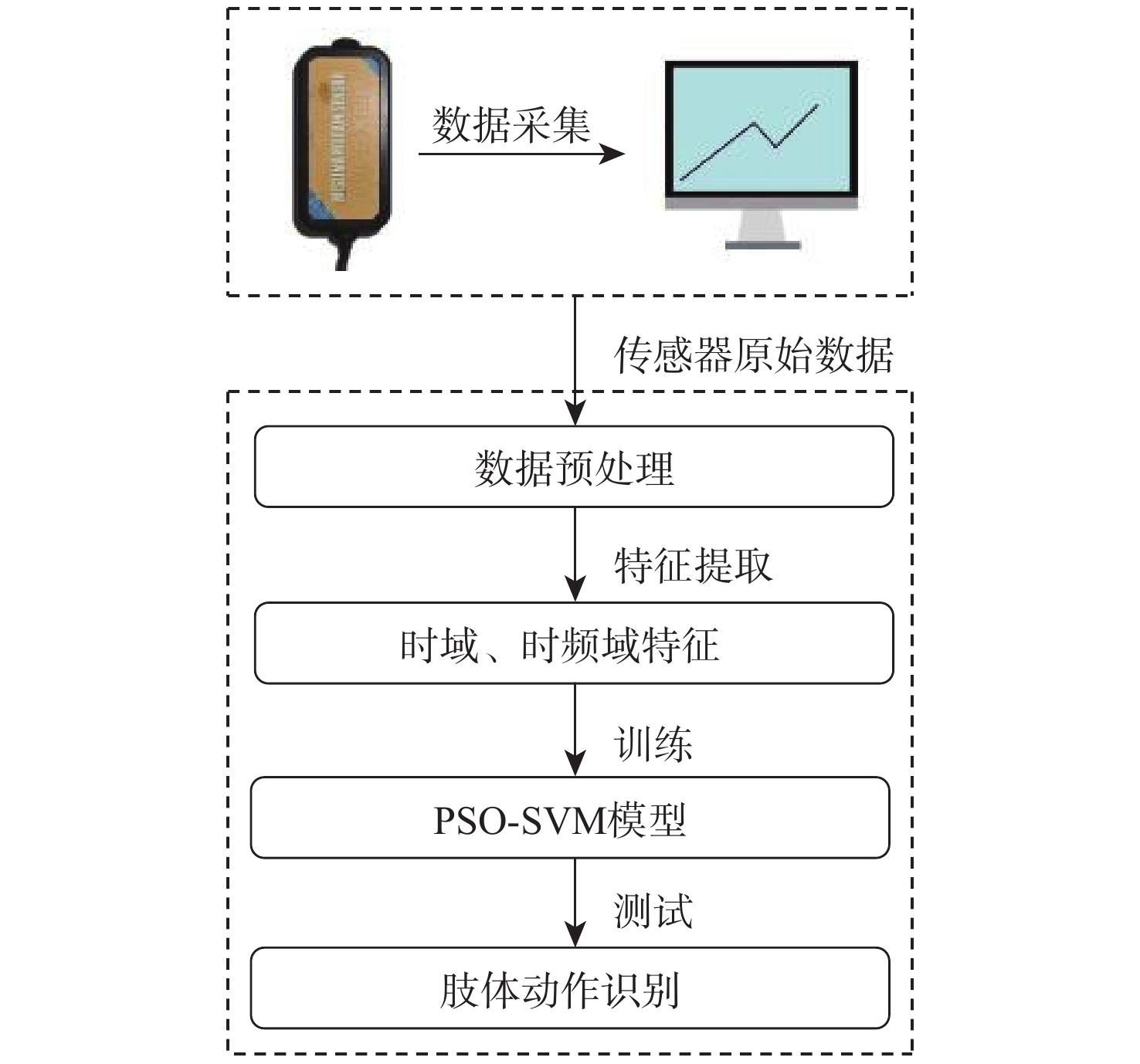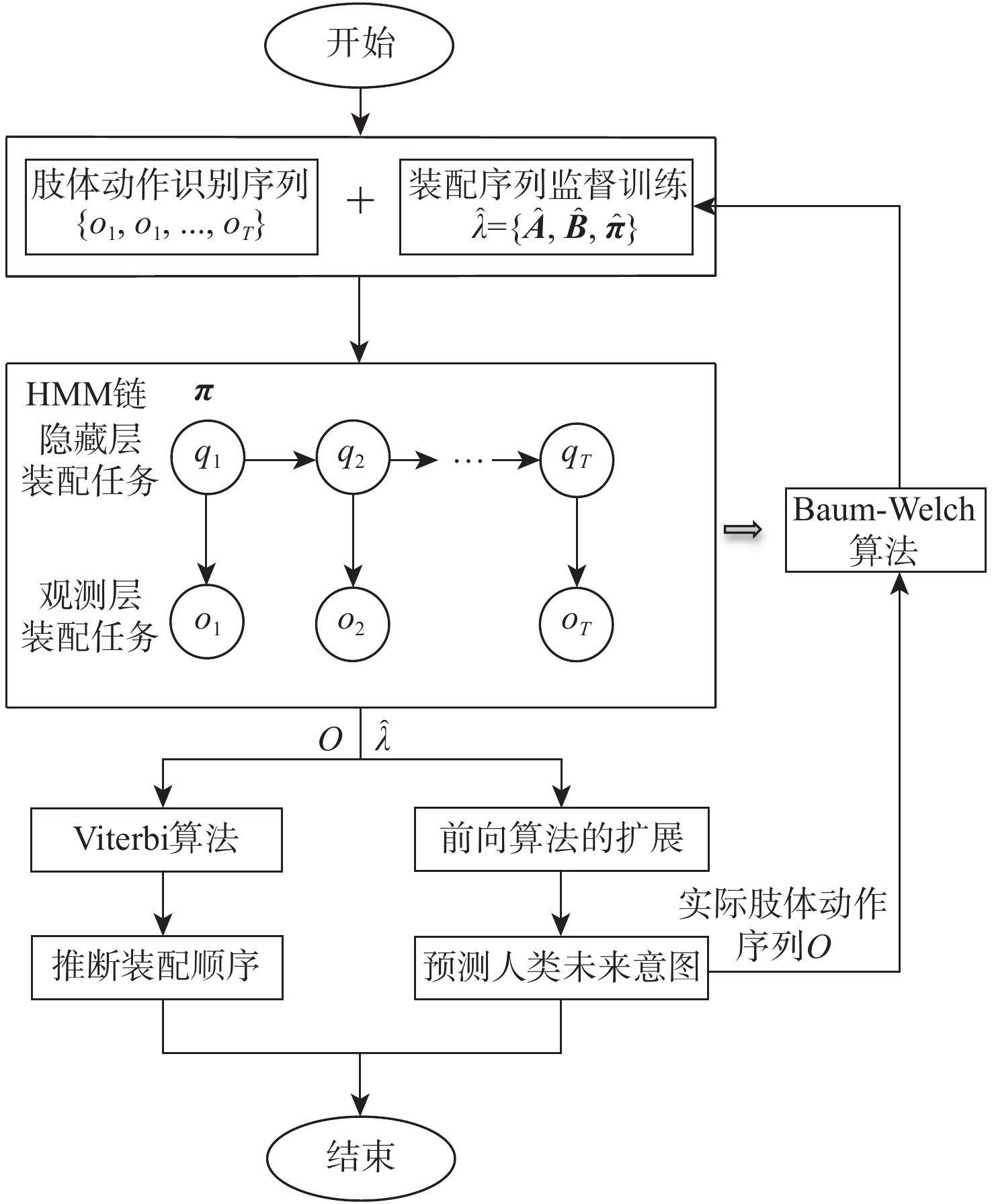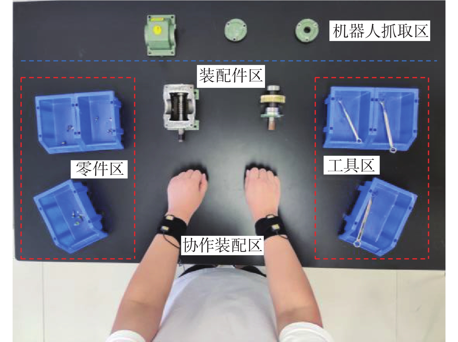 在复杂的装配领域中,单纯依靠机器人很难完成,进行人机协作装配才能确保装配过程顺利进行,但人机协作过程中,机器人缺乏根据人的不同操作作出响应的能力。针对产品组装过程中存在多种不同的组装方案和顺序的情况,提出一种通过识别和预测操作者肢体动作,使机器人根据操作者不同的选择做出对应配合的装配动作,实现动态可变的人机协作装配方案。利用惯性测量单元(IMU)采集操作者的肢体动作信息,提取惯性测量单元信号特征,为提高识别准确率,提出一种同时利用时域和时频域特征的粒子群优化(PSO)支持向量机(SVM)算法,用于肢体动作识别;同时,提出一种参数可变的隐马尔可夫模型(HMM)实时预测肢体动作序列,在监督训练和零训练状态下,推断出操作者的未来意图,实现装配序列的动态可变性。实验结果表明:在减速器人机协作装配实验中,所提方案肢体动作平均识别率达到96.7%,并且能够有效预测操作者肢体动作,实现装配顺序可变的动态人机协作装配,显著提升了装配系统的适应性,降低了人机协作装配的复杂度。