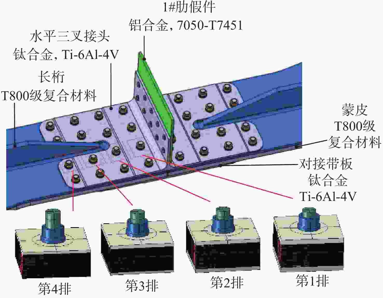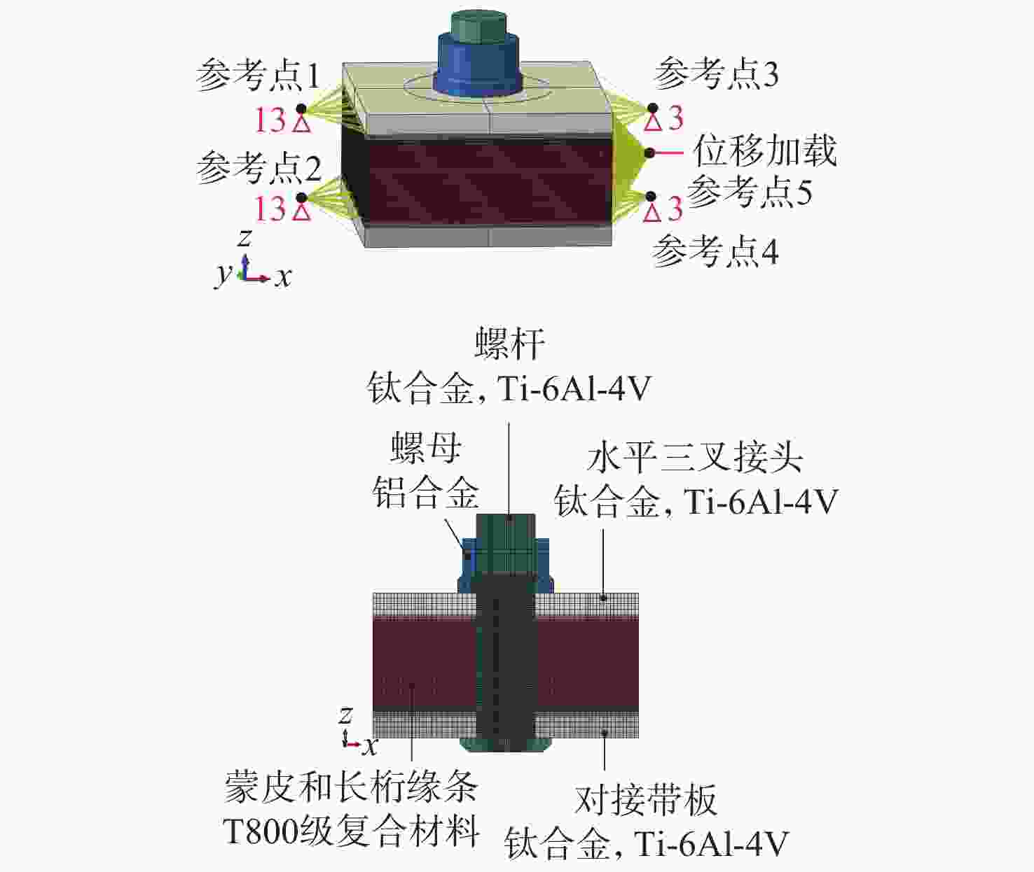 [1] 杜善义, 关志东. 我国大型客机先进复合材料技术应对策略思考[J]. 复合材料学报, 2008, 25(1): 1-10. doi: 10.3321/j.issn:1000-3851.2008.01.001DU S Y, GUAN Z D. Strategic considerations for development of advanced composite technology for large commercial aircraft in China[J]. Acta Materiae Compositae Sinica, 2008, 25(1): 1-10(in Chinese). doi: 10.3321/j.issn:1000-3851.2008.01.001 [2] 谢鸣九. 复合材料连接技术[M]. 上海: 上海交通大学出版社, 2016: 129-235.XIE M J. Joints for composites materials[M]. Shanghai: Shanghai Jiao Tong University Press, 2016: 129-235(in Chinese). [3] HART-SMITH L J. Bonded-bolted composite joints[J]. Journal of Aircraft, 1985, 22(11): 993-1000. doi: 10.2514/3.45237 [4] GRAY P J, MCCARTHY C T. A highly efficient user-defined finite element for load distribution analysis of large-scale bolted composite structures[J]. Composites Science and Technology, 2011, 71(12): 1517-1527. [5] ZHANG F, HU Z D, GAO L M, et al. Investigation on in-plane shear behavior of large-size composite plates with multi-bolt joints[J]. Composite Structures, 2020, 232: 111553. doi: 10.1016/j.compstruct.2019.111553 [6] SASIKUMAR A, GUERRERO J M, QUINTANAS-COROMINAS A, et al. Numerical study to understand thermo-mechanical effects on a composite-aluminium hybrid bolted joint[J]. Composite Structures, 2021, 275: 114396. doi: 10.1016/j.compstruct.2021.114396 [7] 李玺, 李亚智, 磨承杰, 等. 基于连续损伤力学的复合材料多钉连接失效分析和试验研究[J]. 机械强度, 2022, 44(4): 911-920.LI X, LI Y Z, MO C J, et al. Failure analysis and experimental study of composite multi-pin connections based on continuum damage mechanics[J]. Journal of Mechanical Strength, 2022, 44(4): 911-920 (in Chinese). [8] 黄河源, 赵美英, 万小朋, 等. 一种复合材料螺栓连接结构非线性刚度模型及应用[J]. 西北工业大学学报, 2018, 36(1): 66-73. doi: 10.3969/j.issn.1000-2758.2018.01.010HUANG H Y, ZHAO M Y, WAN X P, et al. A composite bolted joints non-linear stiffness model and its application[J]. Journal of Northwestern Polytechnical University, 2018, 36(1): 66-73(in Chinese). doi: 10.3969/j.issn.1000-2758.2018.01.010 [9] 蔡启阳, 赵琪. 环境温度和间隙对复合材料-金属混合结构机械连接钉载分配的影响[J]. 复合材料学报, 2021, 38(12): 4228-4238.CAI Q Y, ZHAO Q. Effects of temperature and clearance fit on the load distribution of composite-metal hybrid structures[J]. Acta Materiae Compositae Sinica, 2021, 38(12): 4228-4238(in Chinese). [10] 张岐良, 曹增强. 复合材料螺接性能的影响因素研究[J]. 航空学报, 2012, 33(4): 755-762.ZHANG Q L, CAO Z Q. Study on factors influencing the performance of composite bolted connections[J]. Acta Aeronautica et Astronautica Sinica, 2012, 33(4): 755-762(in Chinese). [11] 雷凯, 王彬文, 成竹, 等. 飞机多钉壁板混合结构热应力分析与验证[J]. 应用力学学报, 2023, 40(1): 40-47. doi: 10.11776/j.issn.1000-4939.2023.01.006LEI K, WANG B W, CHENG Z, et al. Thermal stress analysis and verification of aircraft multi-bolt hybrid panel structure[J]. Chinese Journal of Applied Mechanics, 2023, 40(1): 40-47(in Chinese). doi: 10.11776/j.issn.1000-4939.2023.01.006 [12] 贾宝惠, 方嘉晨, 武涛, 等. 预紧力影响下的复合材料螺接连接件失效安全性分析[J]. 机械科学与技术, 2025, 44(7): 1290-1300.JIA B H, FANG J C, WU T, et al. Failure safety analysis of composite screw connection under the influence of pre-tightening force[J]. Mechanical Science and Technology for Aerospace Engineering, 2025, 44(7): 1290-1300(in Chinese). [13] 汤平, 李星. 插入式机翼下壁板对接附加弯矩研究[J]. 航空学报, 2019, 40(2): 522436.TANG P, LI X. Additional bending moment in lower panel butt-joint of inserted wing[J]. Acta Aeronautica et Astronautica Sinica, 2019, 40(2): 522436(in Chinese). [14] 高阳. 某型飞机中央翼关键连接区混杂结构试验仿真与分析[D]. 南京: 南京麻豆精品秘 国产传媒, 2020: 19-20.GAO Y. Experimental simulation and analysis of hybrid structure in key connection area of central wing of an aircraft[D]. Nanjing: Nanjing University of Aeronautics and Astronautics, 2020: 19-20(in Chinese). [15] RICE R C, JACKSON J, BAKUCKAS J, et al. Metallic materials properties development and standardization (MMPDS)[M]. Washington, D. C. : U. S. Department of Transportation Federal Aviation Administration, 2003. [16] ASTM. Standard test method for bearing response of polymer matrix composite laminates: ASTM D5961/D5961M-23[S]. Philadelphia: ASTM International, 2017: 1-31. [17] HUTH H. Influence of fastener flexibility on the prediction of load transfer and fatigue life for multiple-row joints[C]//Proceedings of the Fatigue in Mechanically Fastened Composite and Metallic Joints. Philadelphia: ASTM, 1986: 221-250. -