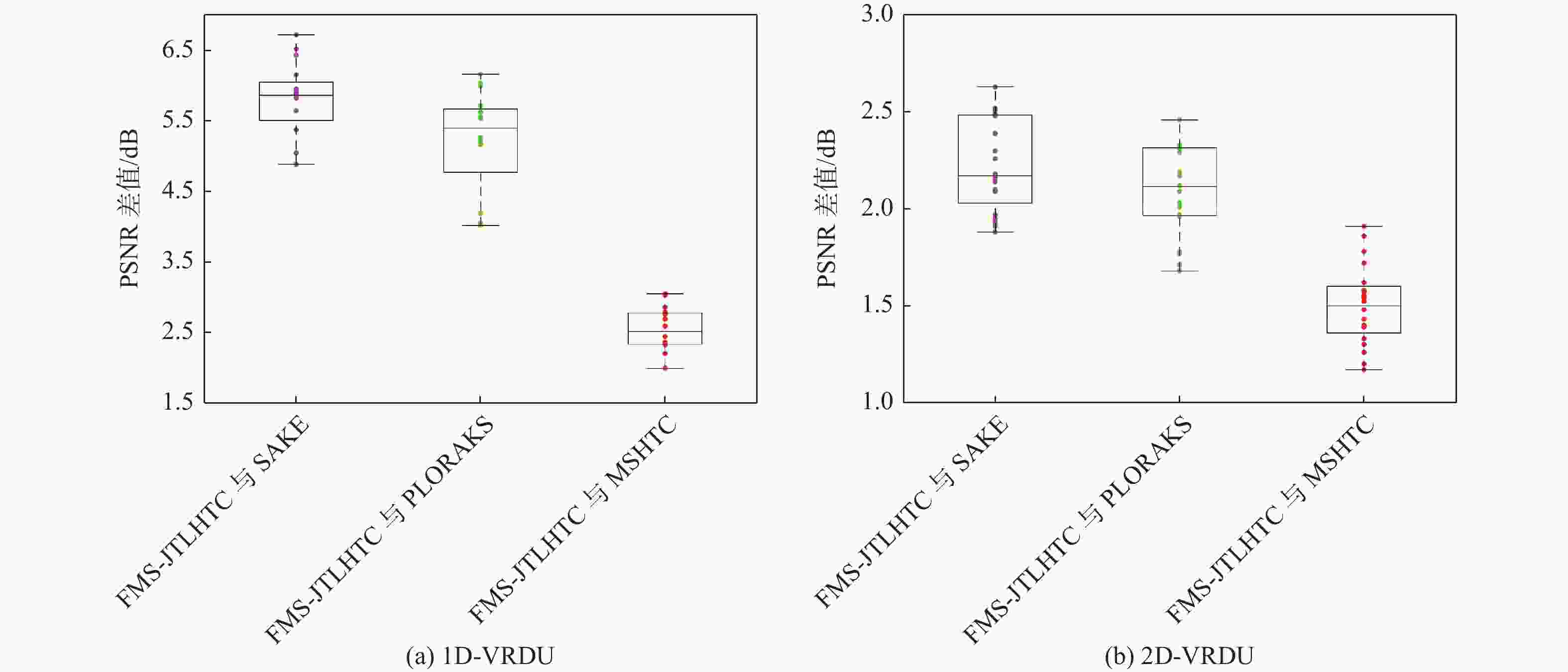 算法 AF PSNR/dB MSSIM FSIM HFEN SAKE[6] 3 32.86 0.9070 0.9961 0.2070 5 28.55 0.8370 0.9912 0.3126 6 27.66 0.8238 0.9889 0.3437 7 27.29 0.8062 0.9875 0.3680 PLORAKS[7] 3 33.85 0.9151 0.9973 0.1814 5 29.27 0.8489 0.9929 0.2892 6 28.11 0.8304 0.9906 0.3282 7 27.53 0.8154 0.9883 0.3659 MS-HTC[30] 3 35.19 0.9317 0.9981 0.1365 5 31.82 0.8844 0.9954 0.2083 6 31.32 0.8805 0.9949 0.2265 7 30.98 0.8711 0.9937 0.2416 FMS-JTLHTC 3 38.01 0.9646 0.9990 0.0997 5 34.59 0.9401 0.9981 0.1504 6 33.71 0.9318 0.9976 0.1698 7 33.39 0.9267 0.9973 0.1830 表 2 4种算法对不同加速因子的2D-VRDU采样模式下4个数据集重建的评价指标平均值