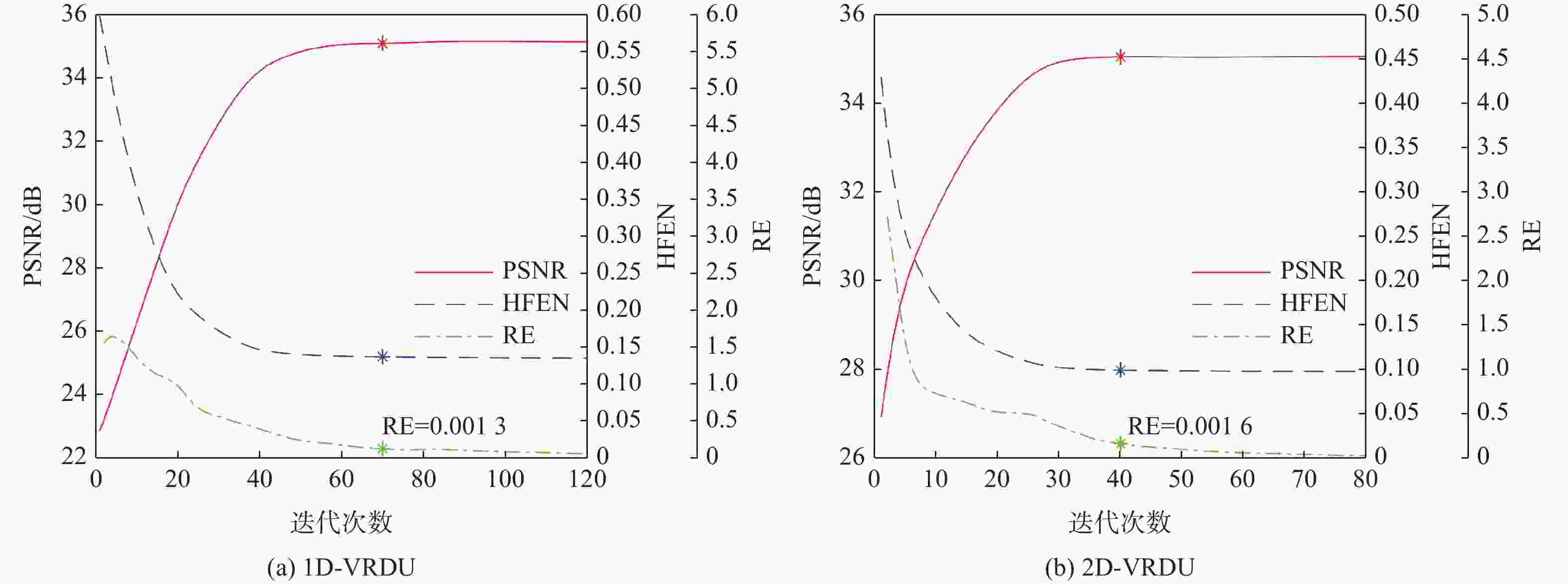 表 1 4种算法对不同加速因子的1D-VRDU采样模式下4个数据集重建的评价指标平均值