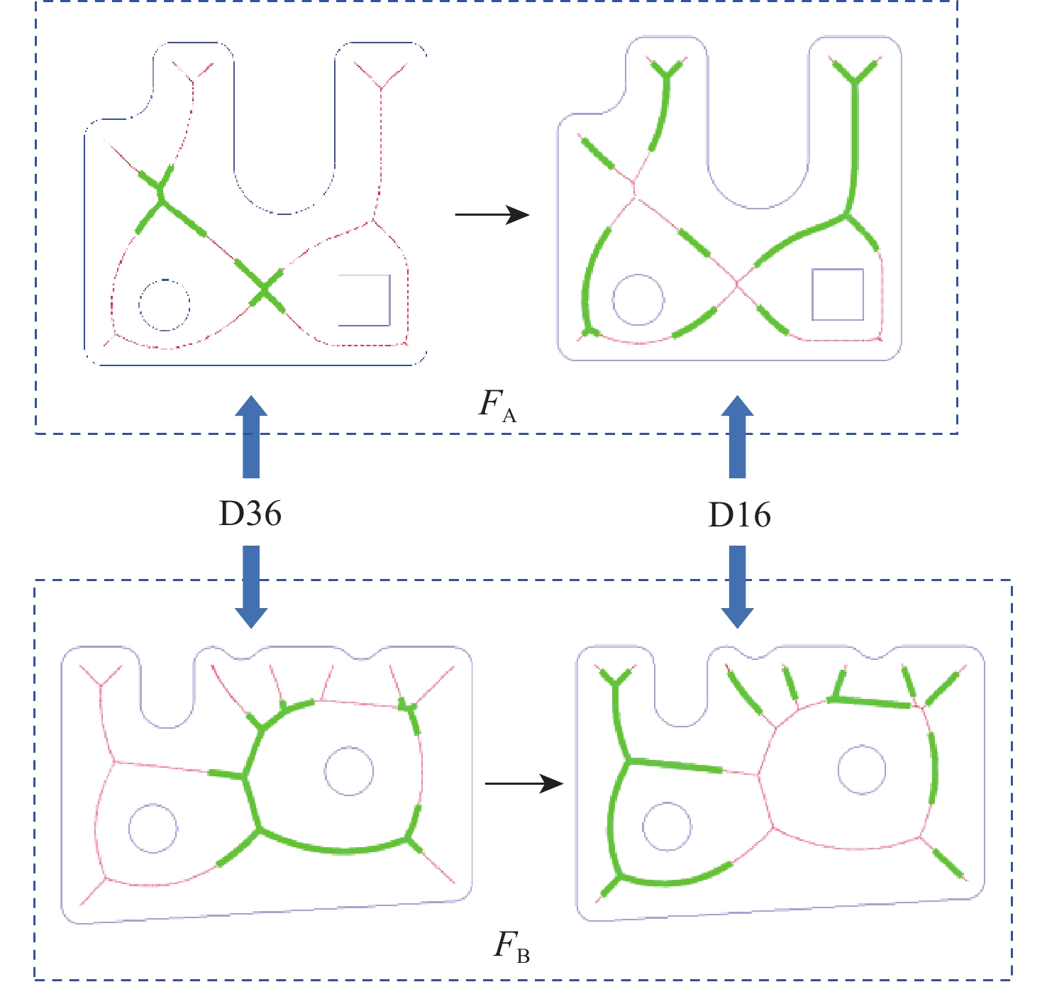 特征 L(D36)/mm L(D16)/mm R(D36) R(D16) S(D36)/mm2 S(D16)/mm2 IT Ra ψ FA 73.45 221.98 2 7 3 938.52 2 742.31 (12,11) 6.3 0.86 (12,11) FB 136.51 323.05 2 8 5 436.13 4 128.95 (13,12) 6.3 (14,12) 注:L(D36),L(D16)为θL=0.76, ωL=0.3时数值;R(D36),R(D16)为θR=0.97, ωR=0.3时数值;S(D36),S(D16)为θA=0.82, ωA=0.3时数值;IT和Ra为θP=0.98, ωP=0.1时数值。 表 4 数控工艺设计效率分析