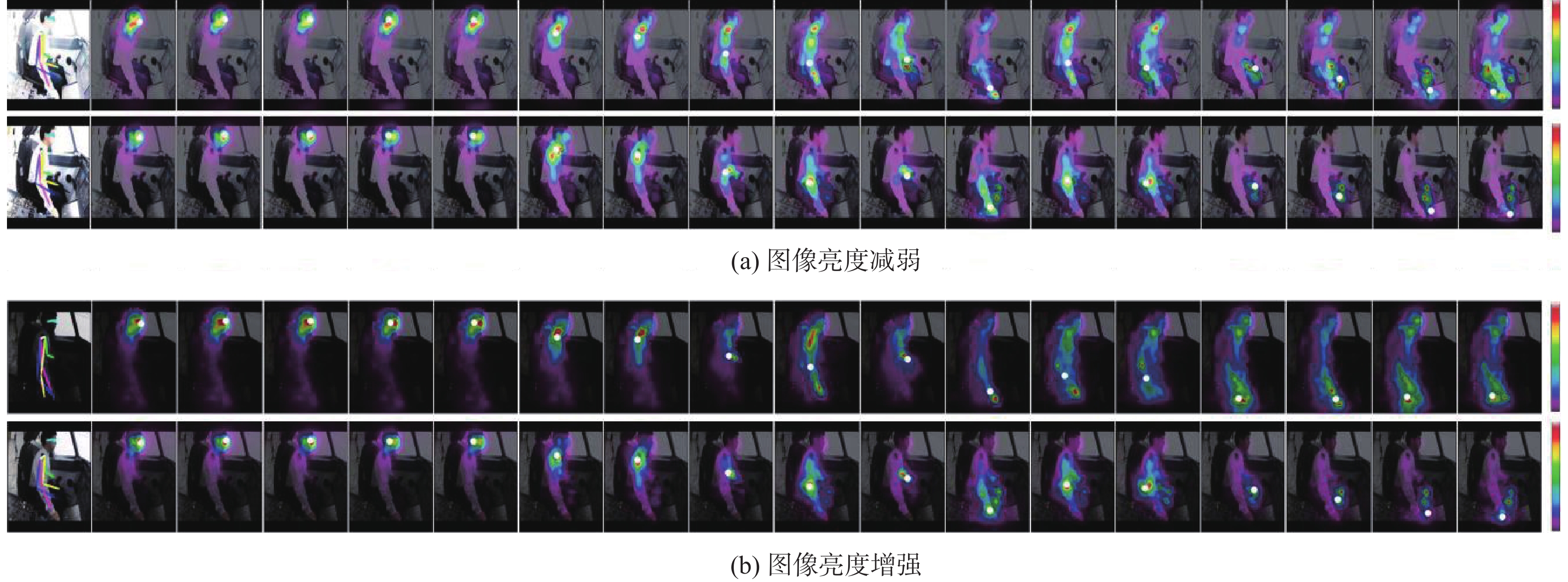 联合模型(肢体+手部) 参数量 推理速度/(帧·min−1) HRNet+MobileNetV2 38.1×106 7.6 HRFormer+MobileNetV2 12.1×106 11.2 HRNet+ShuffleNetV2 36.1×106 7.4 HRFormer+ShuffleNetV2 10.1×106 11.1 HRNetV1+SRHandNet 44.8×106 5.4 HRFormer+SRHandNet 18.8×106 8.8 本文 9.7×106 14.3 表 7 图像亮度调节前后模型性能比较
