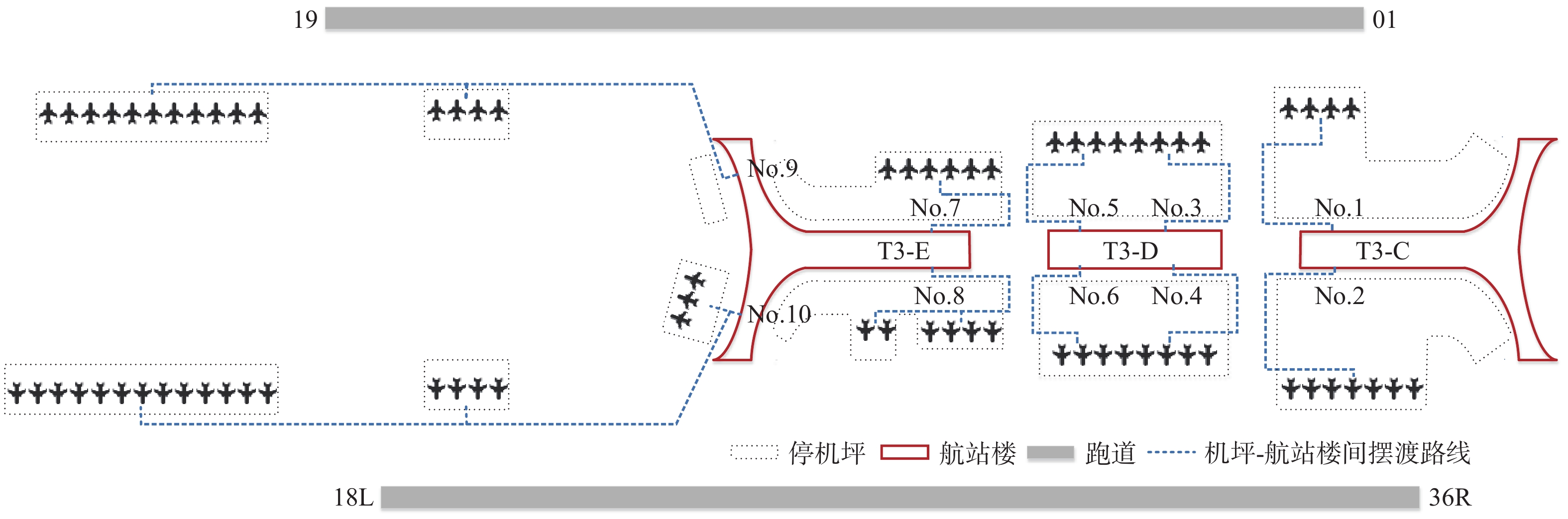 为提升摆渡车运行的灵活性、增强车辆调度方案的能效和实践可操作性,综合考虑多车型和机场摆渡车运输服务的双时间窗特性,从任务点视角构建机场摆渡车调度问题的混合整数线性规划模型。该模型可视为一个考虑多车型和双时间窗且需求可拆分的车辆路径问题,是一个复杂的NP-hard问题,为此,提出一种改进的自适应大邻域搜索(ALNS)算法。以北京首都国际机场东飞行区为背景的案例仿真结果表明:所提算法具有良好的稳定性和优化效果,200次迭代下10轮次计算实验结果的标准差与平均值之比仅为5.6%,优化前后对应的最优目标函数值下降达54%;多车型调度方案显著优于人工和单一车型调度方案,在车辆容量利用能效上较人工、大车型和小车型方案分别提升了98.3%、31.3%和22.2%,在运行总成本上较人工、大车型和小车型方案则分别下降了48.3%、23.4%和23.5%。