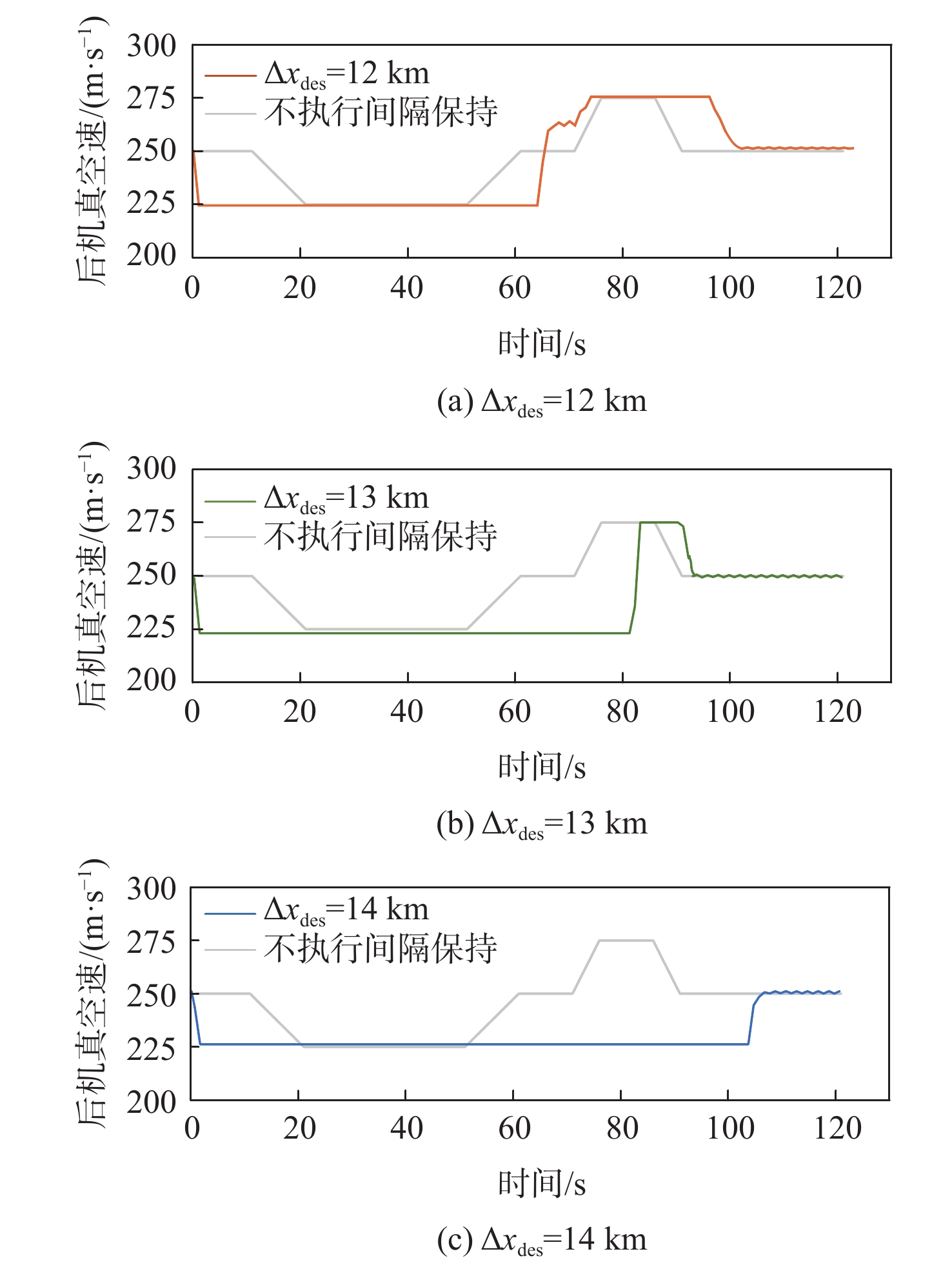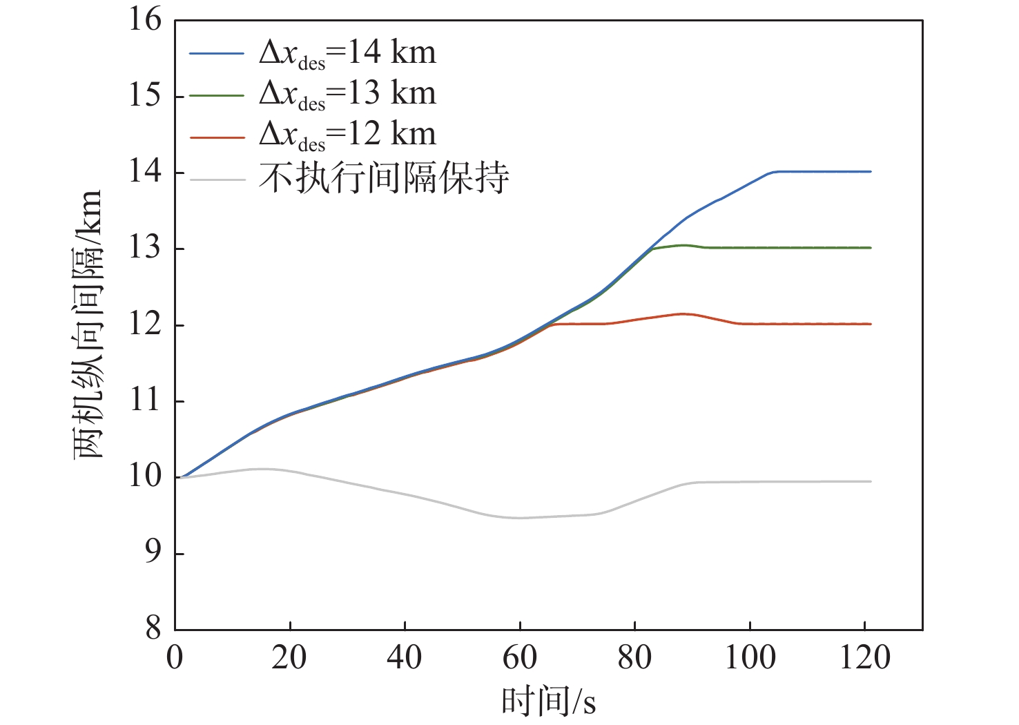 In view of the fact that the high altitude wind, a random factor, often leads to poor robustness of the longitudinal separation between two aircraft in the longitudinal autonomous separation maintenance problem under the random disturbance of track, this paper proposed a longitudinal autonomous separation control method based on model predictive control (MPC). Firstly, the linear time-varying prediction model was developed by establishing the nonlinear kinematics differential equation of the longitudinal separation and the wind field difference between the two aircraft. The longitudinal separation and route deviation distance of the two aircraft was selected as the optimization objectives, the vacuum speed and yaw angle of the front aircraft were taken as the measurable disturbances, and the high-altitude wind was the random disturbance. Terminal equality constraints were added to the air safety and aircraft performance constraints to maintain the stability of the system. To verify the effectiveness of the proposed method, within the specified 120-second simulation time, this article set three sets of different expected separations of 12 km, 13 km, and 14 km. Through the design of an MPC controller, the vacuum speed and yaw angle of the following aircraft were controlled during the rolling time domain cycle. The separation curve between the two aircraft is relatively smooth and always not less than the minimum safety separation of 10 km. It stabilized at the expected target separation in the 74th second, 90th second, and 118th second, and returned to the route starting from the 58th second, 74th second, and 95th second. Two sets of wind field control groups were set up. Two times as much wind was forecast in one group, while eight times as much turbulent wind was disturbed in the other. Both groups were able to establish the expected interval of 12 km smoothly and stably in the 61th second and 72th second, respectively.