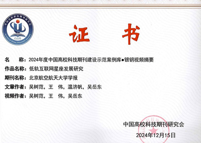 《低轨互联网星座发展研究》入选首届中国高校科技期刊建设示范案例库•银钥视频摘要。
