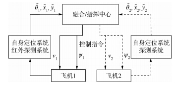| 图 2 双机协同无源目标跟踪系统的控制结构 Fig. 2 Control structure of two aircrafts’ collaborative passive target tracking system |
