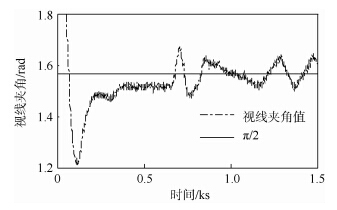 | 图 8 情形2飞机与目标的视线夹角 Fig. 8 The line of sight angle of aircraft and target of case 2 |