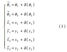 2),分别存在相互独立的服从零均值高斯分布的位置测量误差δ(x1),δ(y1)和δ(x2),δ(y2),其方差分别为σx12,σy12,σx22,σy22.则有