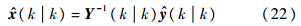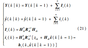 扩展信息滤波(EIF)是结合了扩展卡尔曼滤波(EKF)和信息滤波(IF)的优点的基础上发展起来的针对非线性系统的滤波方法[16],卡尔曼滤波中使用状态估计x^及方差P进行滤波计算,而信息滤波利用信息状态y^及费歇信息Y进行滤波计算,其中,y^=P-1x^,Y=P-1.扩展信息滤波的预测和估计过程如下: