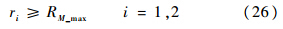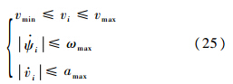 双机协同无源跟踪时还应该考虑飞机自身的安全,即飞机与目标的距离应不小于安全距离,本文取安全距离为目标的导弹的最大发射距离,则安全约束可表示为