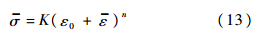 将图 4(b)和图 6采集的数据代入前述公式即可获得材料塑性阶段的应力分量(图 8(a))、应变分量(图 8(b)).采用式(13)所述的Swift材料本构拟合材料塑性阶段的等效应力应变曲线如图 8(c)所示.