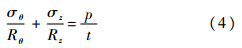 管材两端自由收缩量S1=S2通过图 4(b)可得,将式(3)、式(7)代入式(4)中即可推导出环向应力σθ.