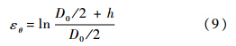管材顶点的真实厚向应变可以通过超声测厚仪采集的实时厚度t得出: