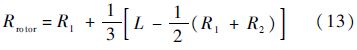 式中:R1为转子包围的齿轮轴直径;R2为相邻齿轮轴直径;L为两齿轮轴中心距.典型的转子构建如图 3所示.