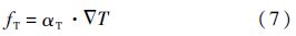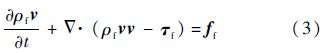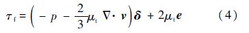 式中:t为时间;ff为体积力矢量;ρf为流体密度;v为流体速度矢量;τf为剪切力张量,可表示为