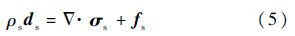 式中:ρs为固体密度;σs为柯西应力张量;fs为体积力矢量;ds为固体域当地加速度矢量.