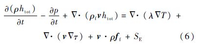 对于流体部分总焓(htot)形式的能量方程可以写成: