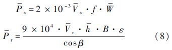 式中:W为齿轮的平均法向载荷;Vs和Vr分别为齿轮的平均滑动速度和平均滚动速度;f为摩擦系数;h为平均油膜厚度;B、ε和β(直齿轮中此参数为零)分别为齿宽、重合度和基圆螺旋角.