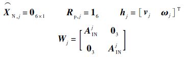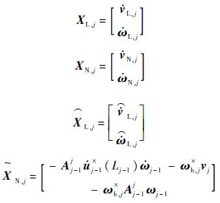 为方便给出广义加速度递推关系,将体j的广义加速度Xj分为与广义速率的一阶导数相关部分XL,j(线性部分),以及与广义速率一阶导数无关的部分XN,j(非线性部分),再将XL,j分为与内接体相关部分L,j,以及和铰hj运动相关部分