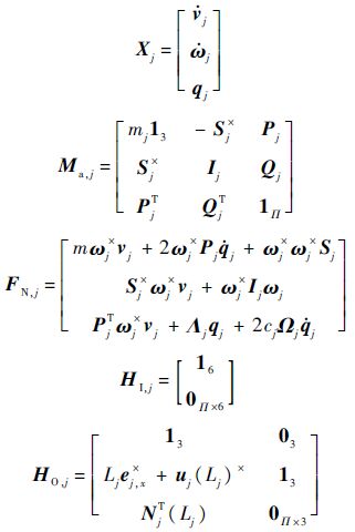 端体n+2外接点的力和力矩FO,jTO,j已知,即作用于主星的主动控制,将式(14)代入式(4)可得端体动力学方程为