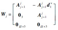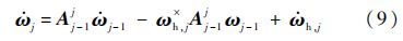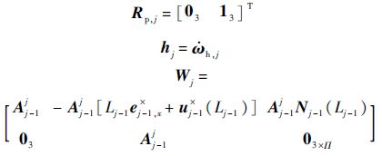 式中:ωh,j为铰hj转角速度在Sj的投影阵;Aj-1jSj-1Sj的坐标转化矩阵.对式(7)和式(8)进行求导得到加速度的递推关系式: