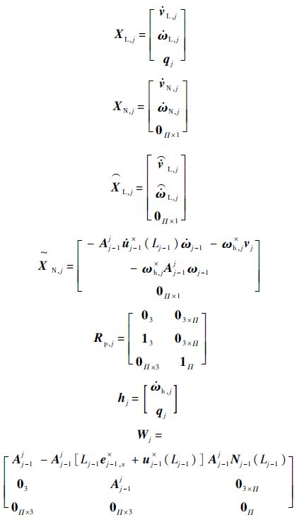 对于柔性杆(j=2,3,…,n+1),广义速度包含速度、角速度和弹性变形,即