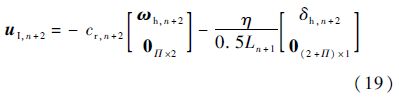 式中:uI,n+2为铰hn+2处做功的广义力.本文只考虑铰hn+2的摩擦力矩和沿着杆纵向的回复力矩(即系绳的抗扭力矩,忽略系绳抗弯力矩),即有