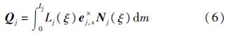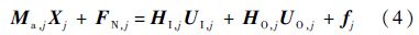 式中:UI,j=[FI,jTTI,jT]T;UO,j=[FO,jTTO,jT]T;FI,jTI,jFO,jTO,j分别为作用于内接点和外接点的外力和外力矩;fj为分布力(例如重力、电磁力等)的广义力,式中其余变量含义如下.