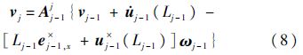 内接体为柔性杆时(j=3,4,…,n+2),坐标系SjSj-1的速度和角速度关系分别为