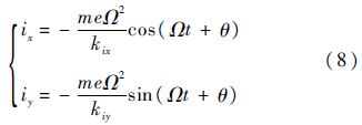 由式(8)可知,此时磁轴承控制电流为同频交流量.对转子实施磁轴承控制电流的零电流控制,即ix=0、iy=0,由式(7)得
