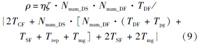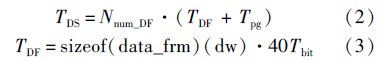 数据帧净荷长度由序列中帧数和每帧中的有效数据组成,大小为Nnum_DS·Nnum_DF·TDF.可以得出,NC→NT的传输效率为