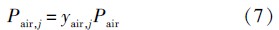 式(1)~式(6)确定了舱内空气的密度ρair、内能Uair和各种组分的摩尔分数yair,j,则舱内空气状态可以确定,舱内气压Pair、空气温度Tair和空气焓值hair可以通过理想气体相关的方程求出,各种组分的分压为