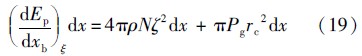 结合文献[14]对射弹入水后的空泡形态进行理论推导.由于射弹为高速运动,可忽略重力.动能的改变量可以表达为