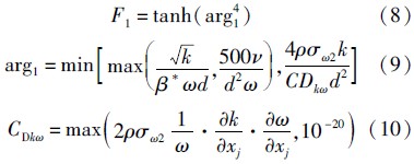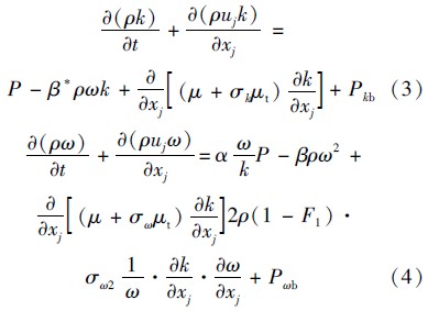 湍流模型采用Menter SST (Shear Stress Turbulence) k-ω模型[11],其表达式为