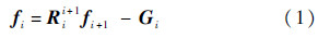 机器人的连杆为刚体,以6R机器人为例,按照D-H方法建模.连杆i及其相邻连杆之间的作用力与作用力矩的受力分析和平衡关系如图 2所示.其中i(i=1,2…,6)为杆件编号,Oi为连杆i的坐标系原点;Pi为连杆i的质心位置;Zi为坐标系Oi中z轴;Gi为在坐标系Oi中连杆i的重力矢量;fi为连杆i-1施加在连杆i上的力矢量;Mi为在坐标系Oi中连杆i-1施加在连杆i上的力矩矢量;Oi+1为连杆i+1的坐标系原点;Zi+1为 坐标系Oi+1中z轴;fi+1为在坐标系Oi+1中连杆i施加在连杆i+1上的作用力矢量;Mi+1为在坐标系Oi+1中连杆i施加在连杆i+1上的力矩矢量.