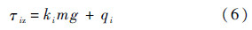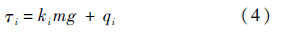 式中:ki为关节驱动力矩τi中与机器人的末端所作用的负载mg有关项的系数项,是末端相对于连杆坐标系i的x轴的位置分量,可以通过位姿矩阵求解得到;qi为τi中与负载mg无关、与连杆mig有关项之和.
