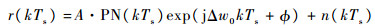 式中:A为接收信号的幅度;PN(kTs)为采样后的伪随机码;Δw0为归一化数字频偏;ϕ为载波初始相位;n(kTs)为噪声项,服从均值为0、方差为σ2的高斯分布。